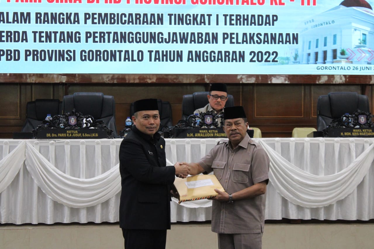 WINNET.ID, Provinsi Gorontalo – Dewan Perwakilan Rakyat Daerah (DPRD) Provinsi Gorontalo bersama Penjabat Gubernur serta Forum Kordinasi Pimpinan Daerah (FORKOPIMDA) Melaksanakan Agenda Rapat Paripurna DPRD Provinsi Gorontalo ke-111, Senin,26/06/23.