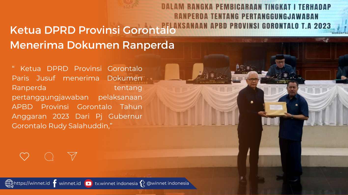 Usai Rapat Paripurna DPRD Provinsi Gorontalo, Paris Jusuf selaku ketua DPRD menyampaikan apresiasi kepada Pemerintah Provinsi Gorontalo atas capaian pengelolaan keuangan Tahun Anggaran 2023.
