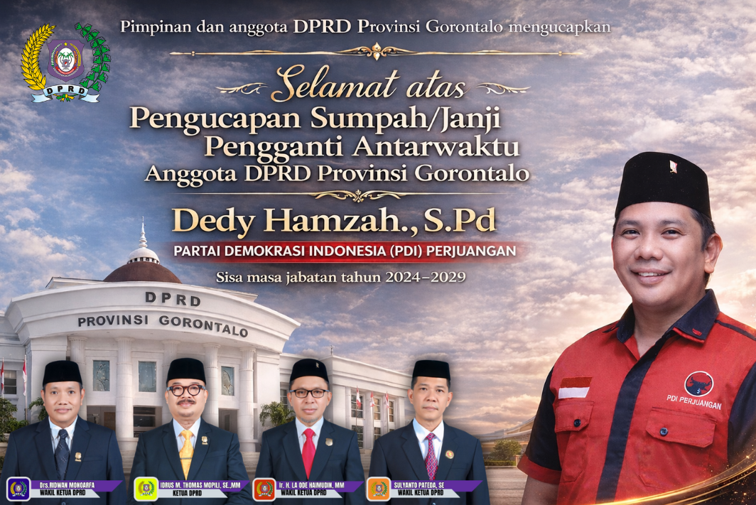 “Kami berharap saudara Dedy Hamzah dapat segera beradaptasi dan berkontribusi aktif dalam menjalankan fungsi DPRD demi kepentingan masyarakat Provinsi Gorontalo,” tambahnya.
