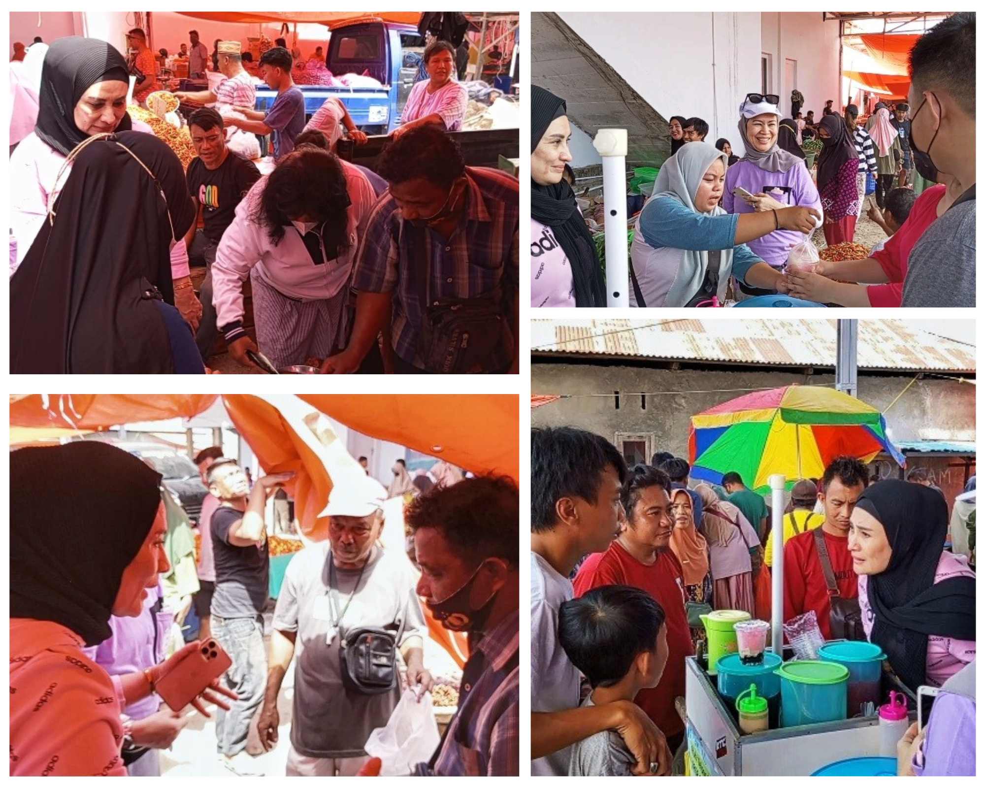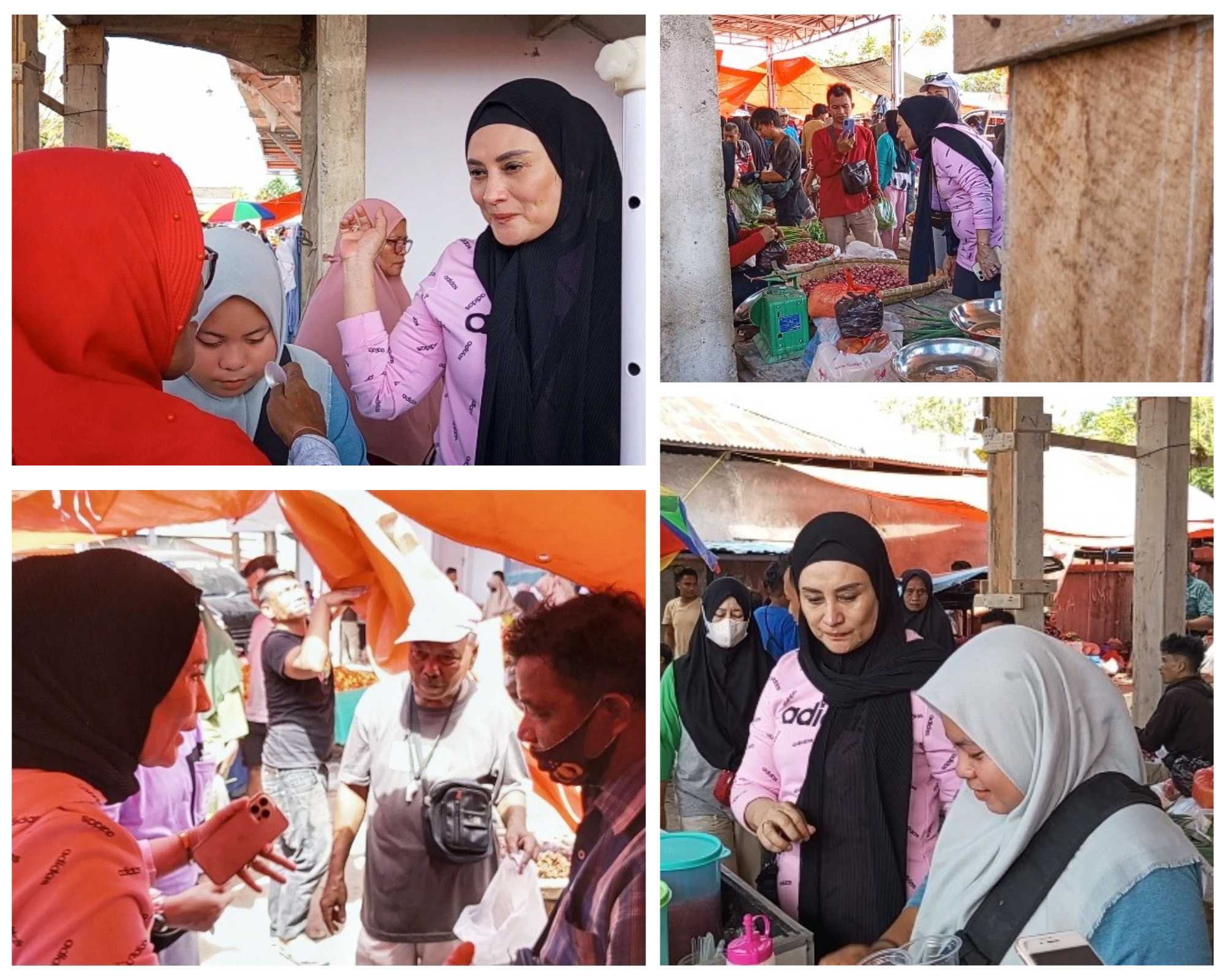 Selama kunjungannya, Indriani tidak hanya berdialog dengan pedagang, tetapi juga sesekali tampak memberikan mentraktir beberapa pengunjung pasar berupa kebutuhan pangan seperti beras, sayur-sayuran, rempah-rempah, ikan dan kebutuhan harian lainnya.
