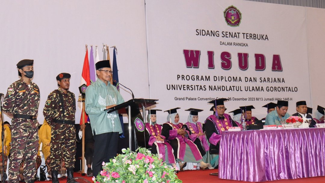 WINNET.ID, Provinsi Gorontalo – Momentum Wisuda Angkatan kedua Mahasiswa Universitas Nahdlatul Ulama Gorontalo (UNUGo) tahun ini menjadi begitu istimewa, karena dihadiri sejumlah pejabat penting, termasuk diantaranya Ketua Lembaga Pendidikan Tinggi Nahdatul Ulama (LPTNU) RI, Prof. H. Ainun Na’im, Ph.D., M.B.A.