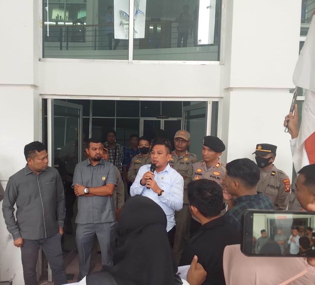 Ketua Komisi IV, Moh. Ikbal Al-Idrus, didampingi anggota Moh. Abd. Ghalieb Lahidjun dan Hamzah Muslimin, serta Gubernur Gorontalo, Gusnar Ismail, menerima langsung perwakilan massa aksi yang dipimpin Ramli Poloso.