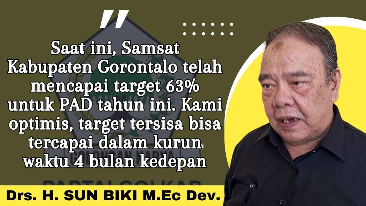 “Saat ini, Samsat Kabupaten Gorontalo telah mencapai target 63% untuk PAD tahun ini.” Ungkap Sun kepada Wartawan.